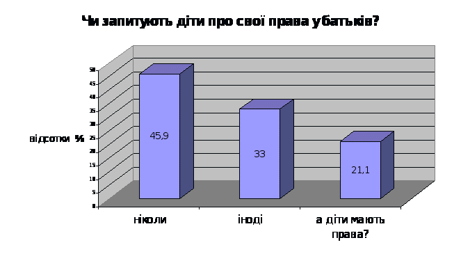 Звичайно, я маю надто мало життєвого досвіду й спеціальних знань. Тому я вирішила вивчити цю проблему докладніше, щоб мати змогу цивілізовано вміти вирішувати свої проблеми і відстоювати права. Я сподіваюсь, що моя робота допоможе дітям нашого регіону підвищити свою правову обізнаність і гідність, а дорослим – переглянути своє ставлення до дитини як до особистості.