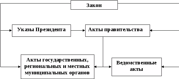 ведомственные акты, т.е. акты конкретных министерств, комететов, департаментов, имеющие в основном внутриведомственное юридическое значение и распространяющиеся на лица, находящихся в системе управленческого, служебного и дисциплинарного подчинения данного ведомства.