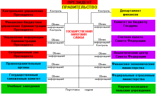 Рис. 1 Взаимодействие Госналогслужбы с министерствами и ведомствами по формированию налоговой политики