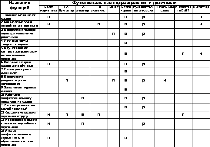 Схематически, горизонтальные связи функциональных подразделений аппарата управления можно представить в виде таблицы 1.2.