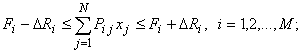 Пусть Ri -задаваемое пользователем максимально допустимое отклонение i-го показателя смеси от его идеального значения. Будем считать, что допустимые отклонения каждого показателя "вверх" и "вниз" одинаковы, тогда модель аддитивного смешения приводит к системе неравенств и уравнений вида: