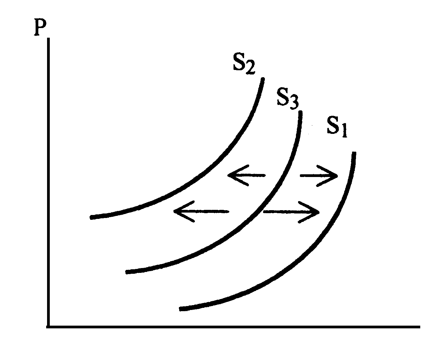 Когда говорят о предложении, то имеют в виду всю кривую предложения. Сдвиг кривой S вправо или влево означает, что предложение меняется при той же цене. Если же ни один из факторов, влияющих на предложение, не меняется, а цена товара растет, то происходит перемещение по кривой S вверх или вниз (предложение товара не меняется).
