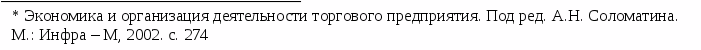 Экономика и организация деятельности торгового предприятия. Под ред. А.Н. Соломатина. М.: Инфра-М, 2002.