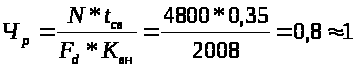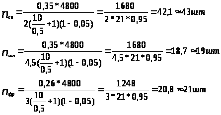 П=F>д>/Ч>сб>*t>сб>=2008/3*0,035=23,43 шт 1 стр. 131 фор. 9.1.