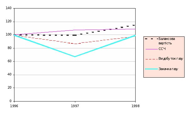 В результаті покращення використання свердловин знижується собівартість продукції. Це забезпечується тим, що амортизаційні відрахування залишаються незмінними або збільшуються повільніше ніж об’єм виробництва, тому амортизація свердловин в розрахунку на оди метр кубічний газу зменшується.