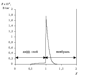 д) теоретические оценки величин пространственного заряда и напряженности электрического поля в трехслойной мембранной системе.