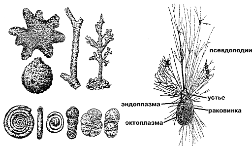 Фораминиферы (Foraminiferida) относятся вместе с голыми, лишенными внутреннего скелета и наружной раковины амебами (Lobosea), радиоляриями (Radiolaria) и солнечниками (Heliozoa) к большой группе простейших — подтипу саркодовых (Sarcodia). Их общая особенность — передвижение с помощью временных выростов цитоплазмы — псевдоподий, или ложноножек. Фораминиферы довольно крупные существа для простейших: нередко их размер достигает одного миллиметра или даже более.