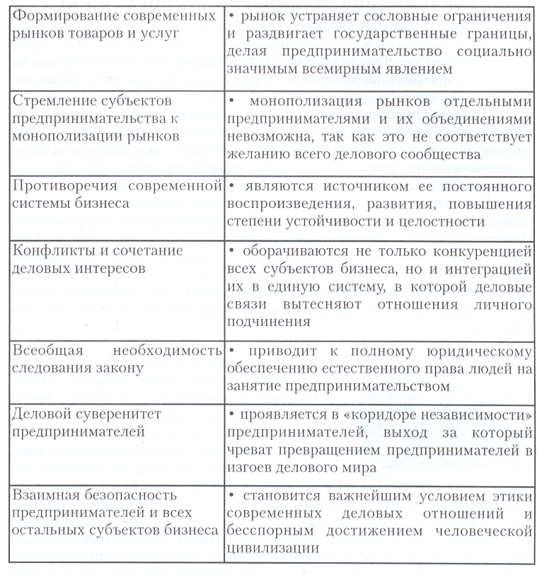 Противоречия деловых отношений, конфликты деловых интересов современных предпринимателей имеют диалектический характер. Данное определение означает следующее: разрешение противоречий в предпринимательском бизнесе постоянно приводит к тому, что конкурентное соперничество каждого из предпринимателей с представителями своего внешнего окружения порождает объективную необходимость постоянного учета законных интересов почти всех тех, с кем, казалось бы, возможна лишь война до победного конца.