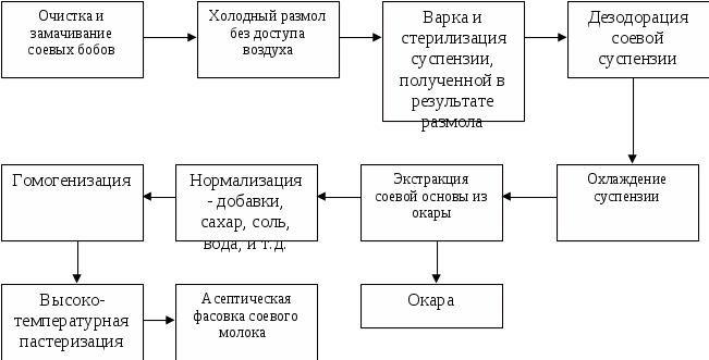 Соевое молоко– это насыщенный, вкусный напиток, получаемый из вымоченной, измельченной и проваренной в пару сои. Это питательный не содержащей лактозы продукт может использоваться в тех же целях, что и коровье молоко. Соевое молоко - идеальный заменитель коровьего молока, особенно в питании детей раннего возраста, особенно детей имеющих аллергическую реакцию на лактозу. Соевое зерно имеет высокую питательную ценность благодаря большому содержанию растительных белков, минеральных солей, витаминов и лецитинов. Чтобы быть усвоенной организмом, соя должна пройти ряд технологических обработок на оборудовании, которое предназначено для пастеризации и охлаждения коровьего молока. При производстве соевого молока получаются отходы, называемые окарой, которые можно применять в кулинарии (добавки к котлетам, мучным и кондитерским изделиям и т.д.) и на корм скоту.