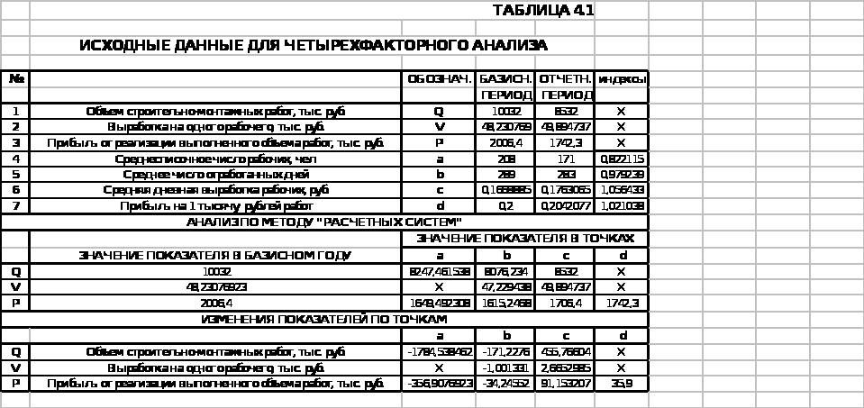 Вычислим для заполнения таблицы исходных данных для четырехфакторного анализа:
