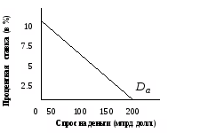 Але, незважаючи на визначені зусилля господарських агентів збільшити кількість зберігаються в їхніх портфелях грошей, банківська система не здатна запропонувати їх в іншої – більшої кількості. Ми припустили, що резерви банківської системи здатні запропонувати тільки 200 мільярдів доларів у формі грошей. Таким чином, ринок грошей може повернутися до стану рівноваги тоді і тільки тоді, коли процентні ставки підвищаться досить високо, приводячи у відповідність величину попиту на гроші з величиною їхньої пропозиції. На малюнку нове положення рівноваги досягається при номінальній ставці відсотка рівної 10%.