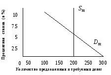 На малюнку 2 приведені типові криві пропозиції та попиту грошей.