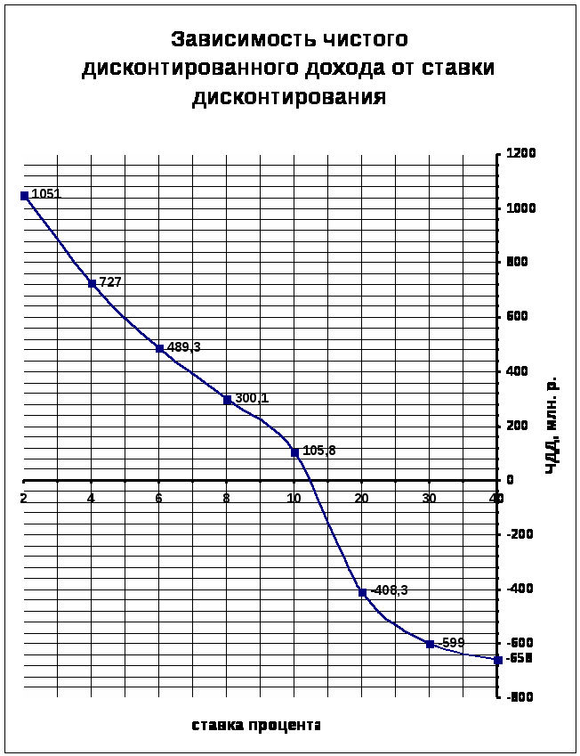 Внутренняя норма доходности (норма рентабельности инвестиций) характеризует норму дисконта, при которой дисконтированная стоимость притоков денежных средств равна дисконтированной стоимости их оттоков. Другими словами, это максимальная норма процентной ставки, при которой инвестиции остаются экономически безубыточными, т е. когда дисконтированная стоимость чистых поступлений от проекта равна дисконтированной стоимости инвестиций и ЧДД равен нулю. ВНД может интерпретироваться так же, как чистые годовые наличные поступления (прибыль или доход, а также амортизационные отчисления), создаваемые на капитал, реализованный в течение определенного периода. Наконец, одна из экономических интерпретаций ВНД такова: если весь проект осуществляется только за счет заемных средств, то она равна максимальному проценту, под который можно взять этот заем, чтобы расплатиться из дохода от реализации проекта за время, равное горизонту расчета.