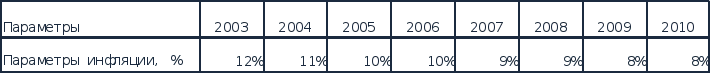 | Параметры инфляции, % | 12% | 11% | 10% | 10% | 9% | 9% | 8% | 8% | |