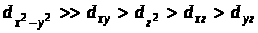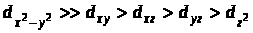 Расчет угловых множителей по данным угловых координат лигандов (таблица 1) приводит выражения для энергии d – орбиталей комплекса (1) к виду: