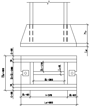 базы (башмака), распределяющей сосредоточенную нагрузку от стержня по поверхности фундамента и закрепляющей колонну в фундаменте.