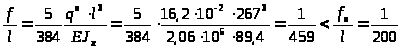 Максимальный прогиб продольной балки от нормативных нагрузок составляет (см. приложение 1)
