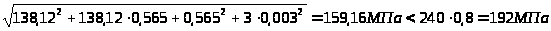 Продольное и кольцевое сжимающие напряжения в элементе 949 (приложение 2) от постоянной, снеговой нагрузок и вакуума (загружения 1, 4, 5) соответственно равны σ>1> = 1,41 МПа и σ>2 >= 0,5 МПа.