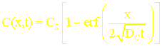 где C(x,t) - концентрация хлоридов на глубине x через время t; CS - концентрация хлоридов на поверхности; erf - функция ошибок Гаусса; DC - коэффициент диффузии хлоридов, зависящий от окружающей среды, твердения и возраста бетона; t - время воздействия хлоридов.
