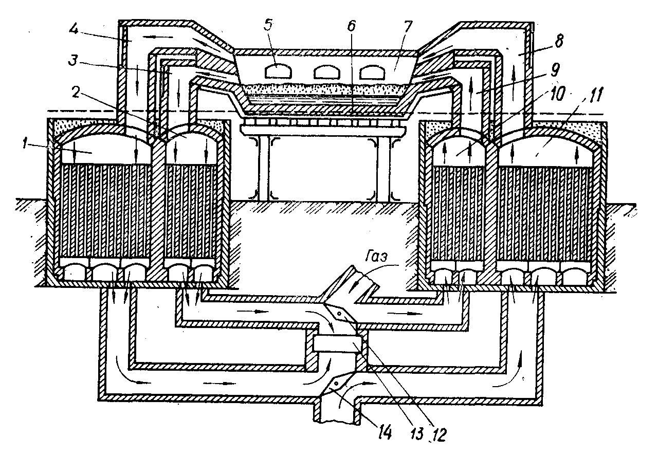 Основной показатель, характеризующий производительность мартеновских печей, является съем стали с 1 м2 площади пода печи в сутки с (т/м2):