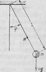 Введем обозначения: l — длина маятника, φ — угол между нитью и вертикалью, t — время, m — масса груза и N — натяжение нити. Если пренебречь силами сопротивления, то задача о движении маятника приводится к решению уравнений