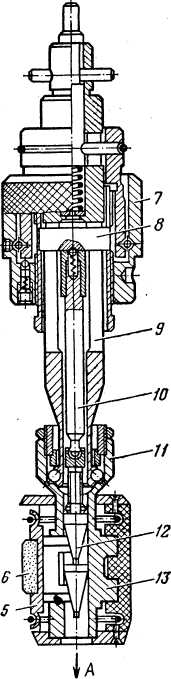 После наплавки отверстие нижней головки шатуна хонингуют до получения номинального размера 93+0>021 мм. Хонингование отверстия в нижней головке шатуна после расточки или наплавки. производят на вертикально-хонинговальном станке модели ЗМ82-в приспособлении, показанном на рис. 3. Хонинговальную головку крепят в патроне, который устанавливают в шпиндель станка. Привод механизма разжима брусков встроен в шпиндельную бабку станка. Поступательное движение от привода передается толкателю 10 и через поводок 7 разжимному конусу 12. Последний, воздействуя на планки 13, разжимает колодки 5 с алмазными брусками 6. Хонингуют отверстие предварительно до диаметра 92,99+°>021 мм алмазными брусками марки 2768-0103-Г-АСР 100/8Q-50M-73 (ГОСТ 16606—71) при удельном давлении брусков 4—6 кгс/см2 и окончательно до диаметра 93+0>021 мм алмазными брусками марки 2768-0103-1-АСМ 28/20-50М-73 (ГОСТ 16606—71) при удельном давлении брусков 3—5 кгс/см2. Хонинговальная головка должна делать 88 двойных ходов в минуту при 88 об/мин шпинделя станка. Шероховатость поверхности после окончательной обработки не ниже /?а = 0,63 мкм.