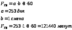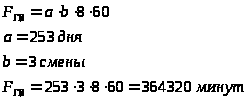 FГВ = «кол-во рабочих дней в году» x «кол-во смен» x «8 час.» x «60 мин.»
