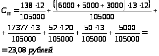 Соб = 10800 + 6577 = 17377 рублей Спр = 30 + 22 = 52 рубля Син = 50 рублей (штангенциркуль) Сц = 5000 рублей