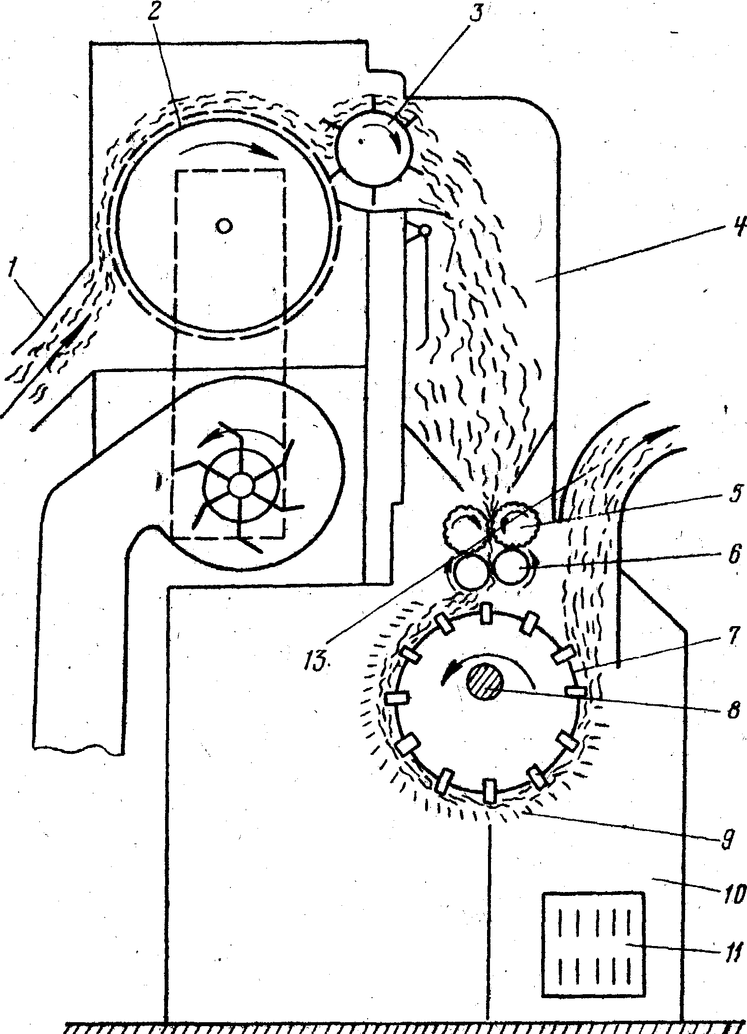 Создание специальных чесальных машин для выработки полуфабрикатов при безверетенном способе прядения обусловлено тем, что в данном случае недопустимы сорные примеси, особенно крупные, и неразделенные комплексы волокон. Для обеспечения этих условий чаще всего применяют двухбарабанные чесальные машины.