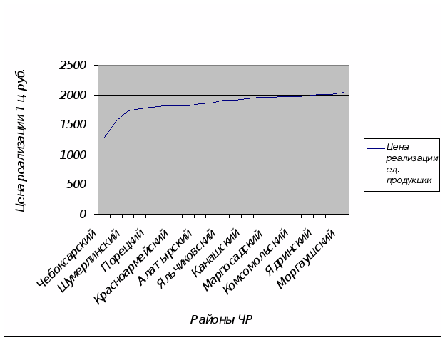Производственная себестоимость 1 ц привеса живой массы крупного рогатого скота выше коммерческой себестоимости, а последняя в свою очередь выше цены реализации единицы продукции, отсюда и убыточность данного производства. По данным комбинационной группировки 10 районов реализуют свою единицу продукции по цене до 1898,85 руб., что отрицательно сказывается на их производстве. Сюда входят такие районы как Чебоксарский, Вурнарский, Ибрессинский, Алатырский, Аликовский, Порецкий, Шумерлинский, Красноармейский, Янтиковский и Козловский. Остальные районы реализуют свою продукцию по цене свыше 1898,85 руб/ц, но и это не оправдывает средства. Средний уровень окупаемости затрат по Чувашии составляет 0,75 руб.