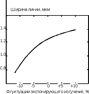 пленке. Вследствие внутреннего эффекта близости (дифракционные потери) изолированные экспонируемые линии облучаются недостаточно и должны экспонироваться с большей дозой (ведет к искажению изображений линий размером более 3 мкм или неэкспонируемых промежутков размером менее 3 мкм) или проявляться с потерей толщины резиста в неэкспонируемых промежутках.