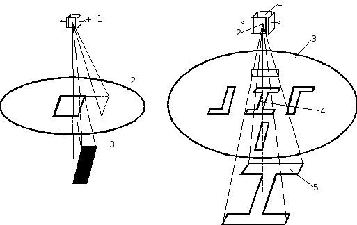 В проекционных системах используются линзы или зеркала, позволяющие проецировать рисунок фотошаблона (масштаб 10:1, 5:1 или 1:1) на квадратное поле (20х20) или полоску (1,5 мм), которая затем сканируется по пластине.
