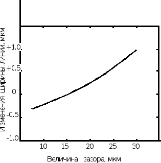 Рис. 8. Изменение ширины линии в зависимости от величины зазора при печати с зазором.