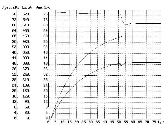 Динамические характеристики электропривода по нагрузке практически определяют точность и чистоту обработки изделия, а также стойкость инструмента. Устойчивый процесс резания при необходимой точности и чистоте поверхности возможен, если параметры настройки привода обеспечивают при набросе номинального момента нагрузки максимальный провал скорости не более 40% при времени восстановления, не превышающем 0,25с.