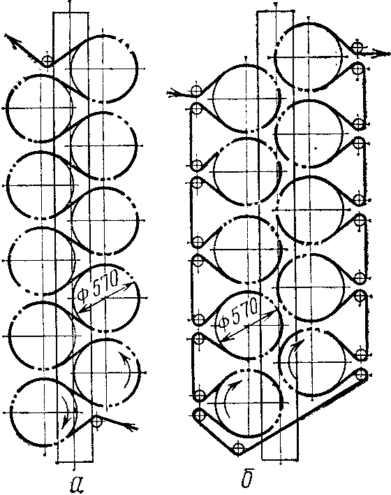Рис.4 Схема способов заправки ткани на сушильных барабанах: