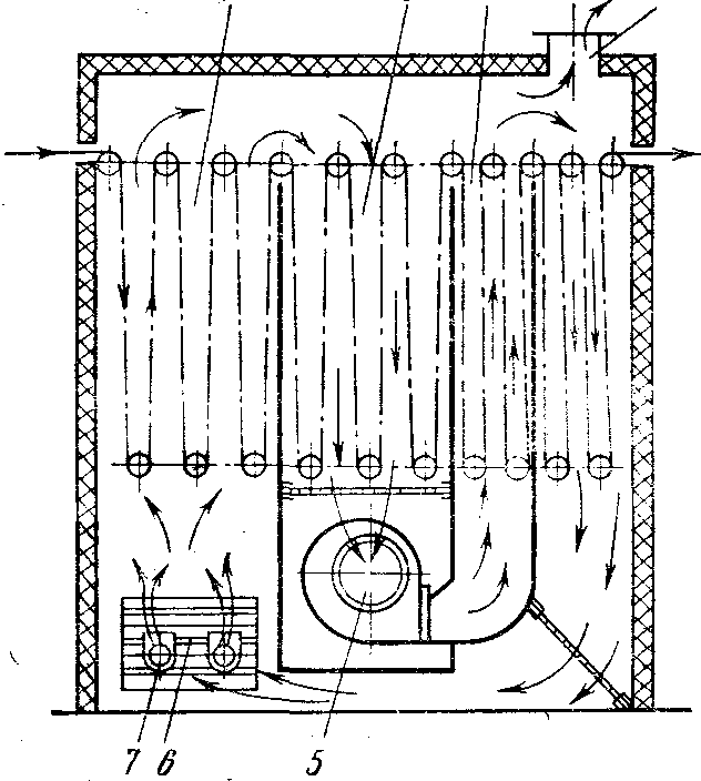 Рис. 16. Схема циркуляции воздуха в зоне сушилки СШМ