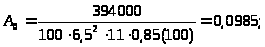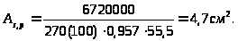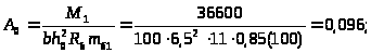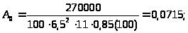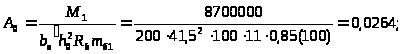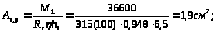 по [2, стр. 38, прил. III, табл. 3] определяется h=0,975; x=0,05; вычисляется площадь сечения растянутой арматуры
