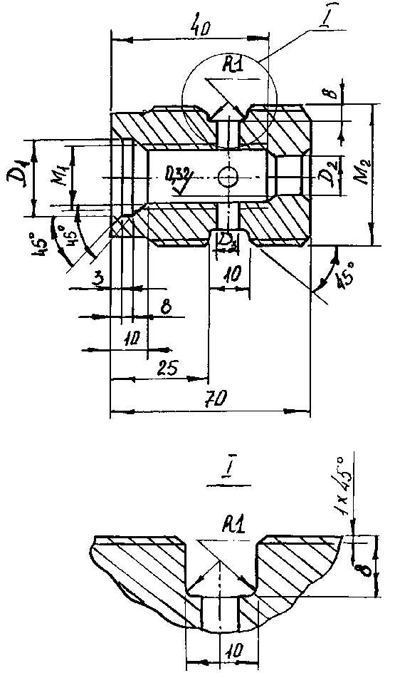 7. Для четырёхканавочных метчиков диаметр сердцевины равен D1 = 1.3 + 0.45d0 и равен D1 = 13.45 мм.