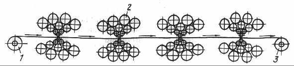 1 — разматыватель; 2 — 20-валковые рабочие клети; 3 - моталка