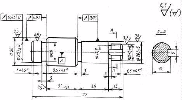 Подрезать второй торец, выдерживая размер 12,8-0,1, центровать торец, точить фаску Фрезеровать шпоночный паз b=5, выдерживая размер 14 окончательно Зачистить заусенцы Накатать резьбы М16х1,5-8g Шлифовать шейку Æ20j>s>6 (+0.0065) с подшлифовкой торца Æ26/Æ20j>s>, выдерживая размер 30 окончательно; шлифовать шейку Æ20j>s>6 (+0.0065) с подшлифовкой торца Æ26/Æ20j>s>, выдерживая размер 13 Промыть деталь Навесить бирку с обозначением детали на тару Технический контроль Нанесение антикоррозионного покрытия |