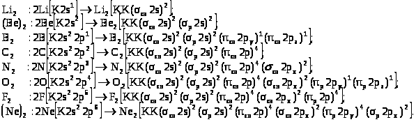 Образование молекул из атомов элементов II периода может быть записано следующим образом (К – внутренние электронные слои):