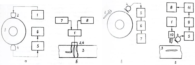 Методы прохождения (рис. 6) используют излучающие и приёмные преобразователи, расположенные по разные или по одну сторону контролируемого изделия. Применяют импульсное или (реже) непрерывное излучение и анализируют сигнал, прошедший через контролируемый объект.