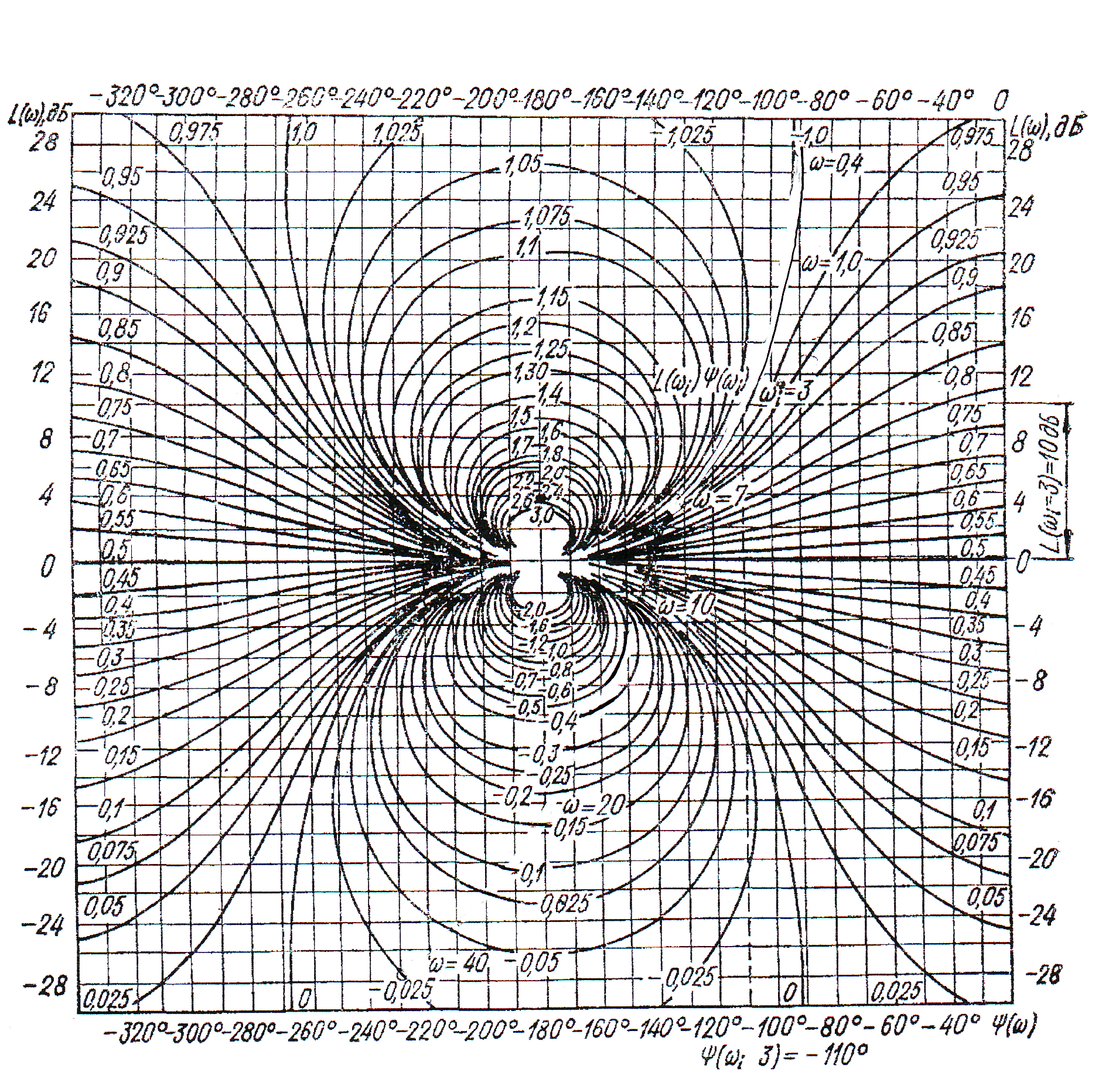 ВЧХ замкнутой системы по ЛЧХ разомкнутой системы строиться с помощью специальной номограммы (рисунок 2). Исходными при построении номограммы является выражение