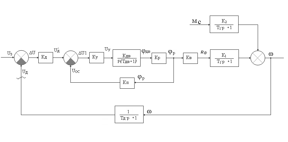 Рис.2 Функциональная схема САР частоты вращения приводного электродвигателя стенда для обкатки ДВС.
