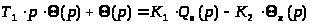 Закон регулирования во многом определяет свойства системы. Определим закон регулирования рассматриваемой САР температуры поливной воды в теплице. Для этого найдем передаточную функцию, определяющую взаимосвязь управляющего воздействия Q>в> на объект и ошибки е: