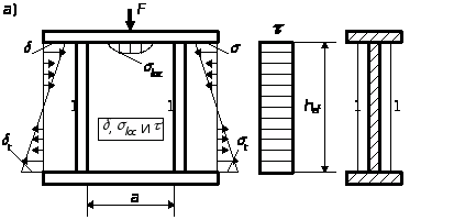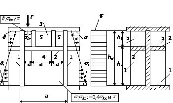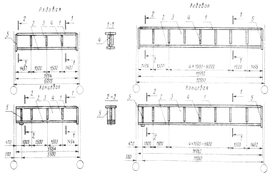1 - верхний пояс; 2 - нижний пояс; 3 - стенка балки; 4 - ребра жесткости; 5 - опорные ребра