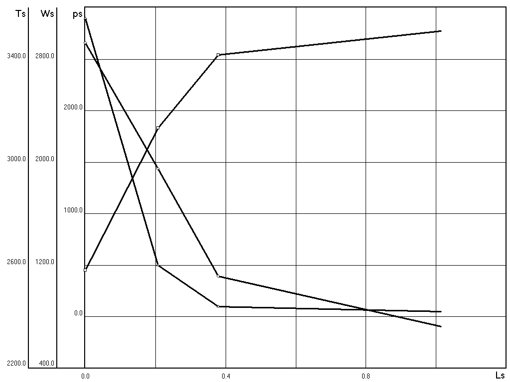 Определение зависимости T>s>, W>s>, p>s> по длине сопла(L>s>):