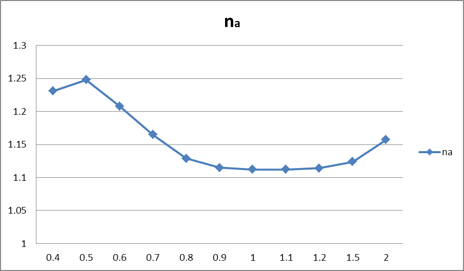 Термодинамический расчет рекомендуется проводить по справочнику «Термодинамические и теплофизические свойства продуктов сгорания ». Топливная пара керосин – кислород рассматривается во 2 томе указанного справочника. Для дальнейших расчетов определяю давление в камере сгорания– зная камерное давление двигателя прототипа, в Р-5 оно равно р>к>= 25 атм ,нужно принять ближайшее ему давление, имеющееся в справочнике, ему соответствует величина 5000 кПа = 50атм. Это давление и будет расчетным, т.е р>к> = 5000 кПа. Далее строим зависимости произведения газовой постоянной и температуры на срезе сопла R>a>T>a>, скорости продуктов сгорания на срезе сопла W>a> и коэффициента изэнтропы на срезе сопла n>a> от коэффициента избытка окислителя α>ок>, имея в виду, что газовая постоянная на срезе сопла равна отношению универсальной газовой постоянной к молекулярному весу продуктов сгорания на срезе сопла. За срез сопла следует принять столбец таблицы, давление в котором равно 50 кПа, или 0.5 атм.