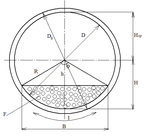 Эффективность шаровых мельниц зависит от степени заполнения барабана мелющими телами, которая характеризуется коэффициентом загрузки, представляющим собой отношение площади поперечного сечения слоя загрузки в спокойном состоянии к площади поперечного сечения барабана, и рассчитывается по формуле
