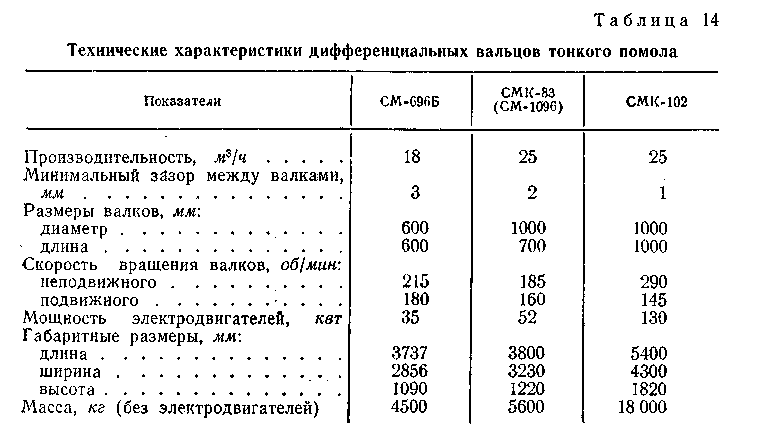Вальцы тонкого помола СМК-83 (СМ-1096) отличаются от вальцов СМ-696Б большими размерами валков, меньшей скоростью их вращения и несколько повышенной мощностью электродвигателя.